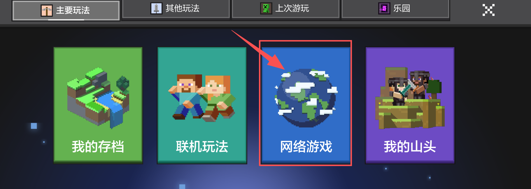 打开我的世界启动器,登录后在主界面点击左侧菜单栏的「网络游戏」选项。